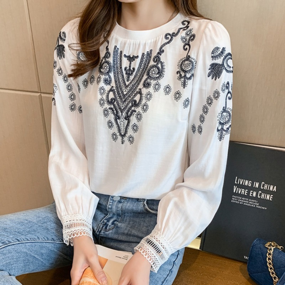 بلوزة أنيقة مطرزة بأكمام قصيرة وطويلة
