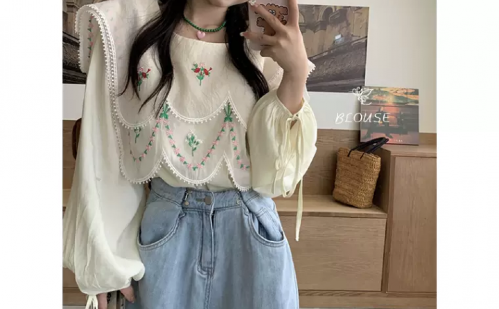بلوزة بياقة طبقات مطرزة