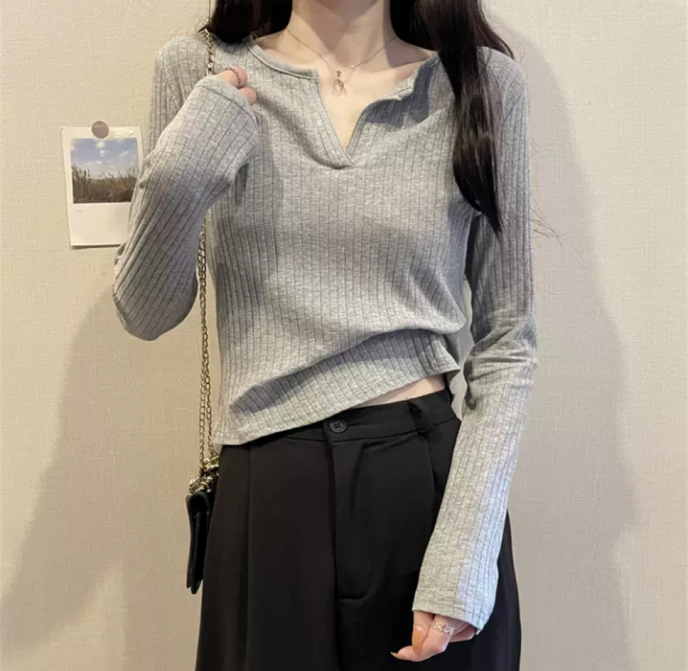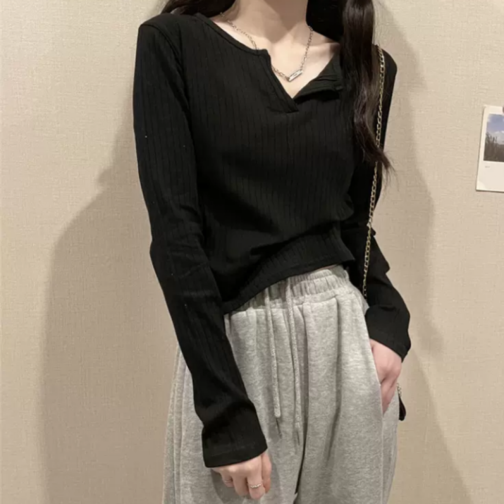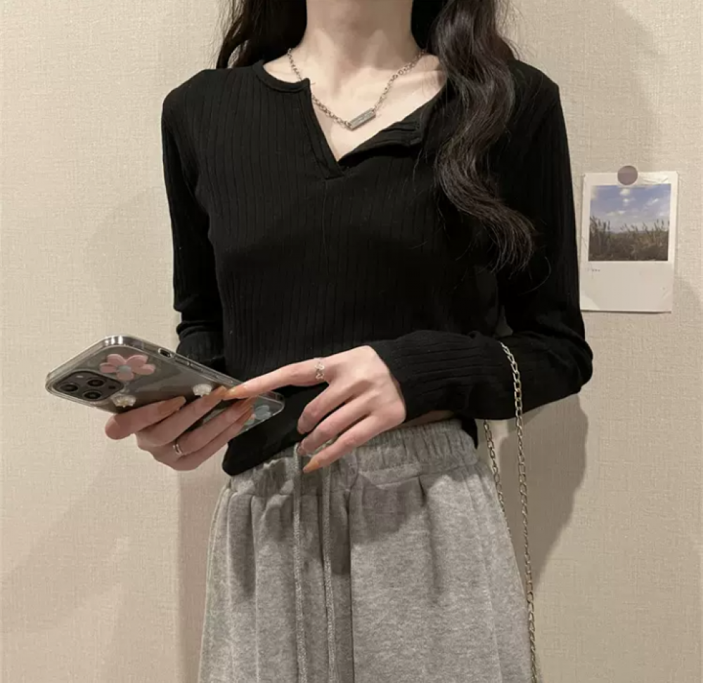 بلوزة قصيرة بأكمام منتظمة طويلة