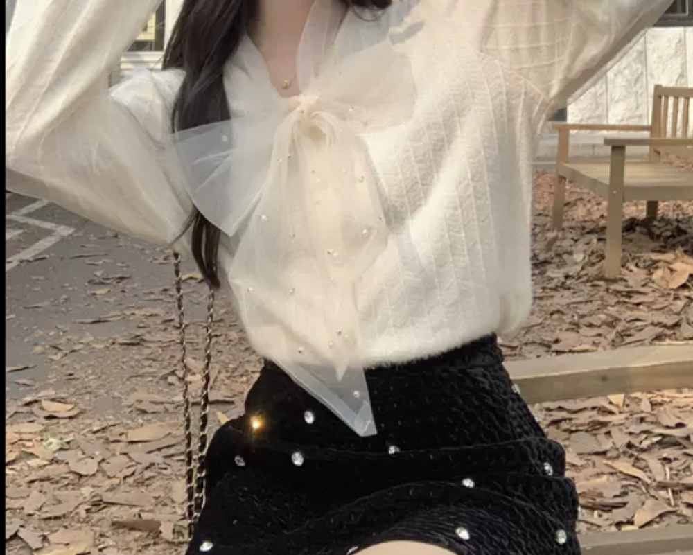 قميص بياقة كبيرة وفيونكة سوداء