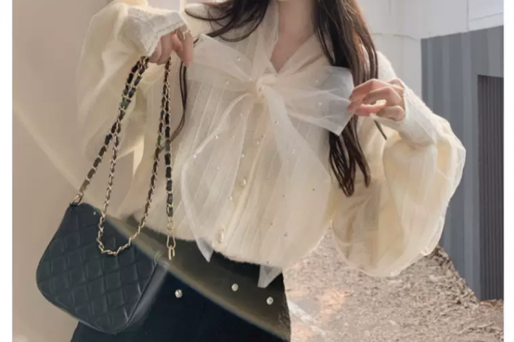 بلوزة شيفون بأكمام منفوخة